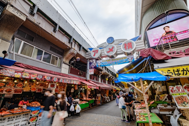 アメ横は、上野駅と御徒町駅の間に広がる商店街で、正式にはアメヤ横丁と言います。